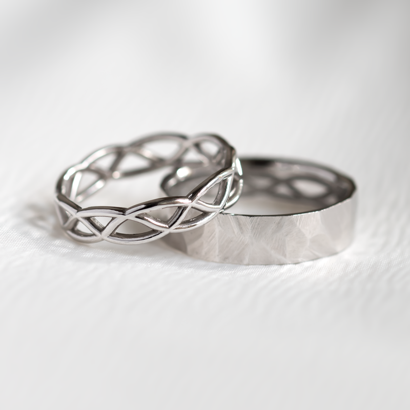 Each wedding ring with a textured surface is made by hand in our studio, which makes each piece unique. As a result the surface may be slightly different from the surface on the pictures or mock up in the showroom.