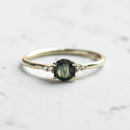 CHOICE OF JEWELLERY: A twig ring with a lab-grown diamond, an engagement ring with a moss agate or an emerald ring. These are our picks for gold jewelry that's perfect for a proposal surrounded by woods and meadows.