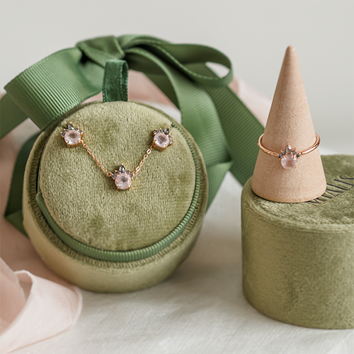 Půvabný drahokam zvaný morganit se řadí do skupiny berylů, stejně jako akvamarín nebo smaragd. Někdy bývá přezdíván také jako růžový beryl nebo růžový smaragd. Možná vás tedy nepřekvapí, že se v přírodě nejčastěji vyskytuje ve světle růžové barvě. Narazit na něj můžete ale v pestré paletě – od fialkové, přes broskvovou, až po téměř čirou. Různorodost pastelového zbarvení totiž ovlivňuje přítomnost manganu či cesia ve sloučenině. A aby vynikl co nejkrásnější a nejintenzivnější odstín, bývá drahokam také tepelně upravován. Až se tedy pustíte do výběru drahokamu, nenechte se zaskočit jeho různorodostí, spíše pamatujte, že je každý kousek originál!