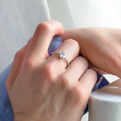 We offer both a wide range of (not just) diamond engagement rings and a rich selection of moissanite rings. So which one will it be?