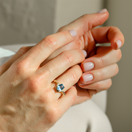 Rose gold jewellery is so interesting that there is no need to experiment too much. If you like subtle variations, go for diamonds or pinkish morganites to bring out the delicacy of each piece. But if you're the brave type, don't be afraid to try new combinations – rose gold jewellery can be set with any gemstone! At Mialis, we love the contrast of rose gold paired with salt and pepper diamonds, and we're particularly proud of the unusual engagement ring Adira.