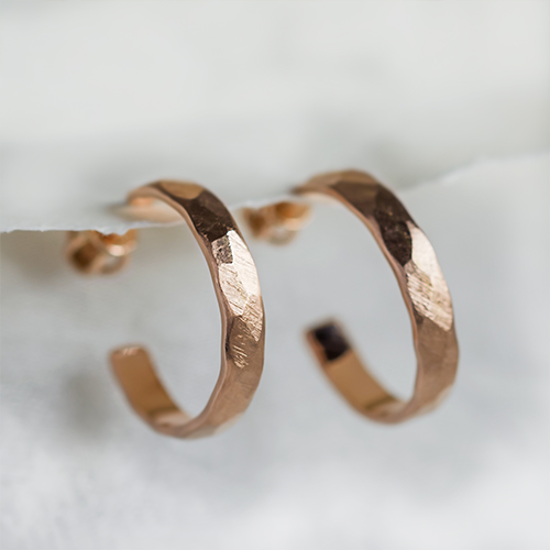 In the case of gold, this symbol represents the number of carats. So whether you are buying a white gold ring, rose gold necklace or yellow gold earrings, each piece should be marked with the carat number. The colour of the gold doesn't matter. If you have two 18kt gold rings of different colours, they should have the same hallmark. We are registered with the Assay Office. Every piece of jewellery we make is hallmarked. You can therefore be sure that all the products that come out of our studio are made of real gold.