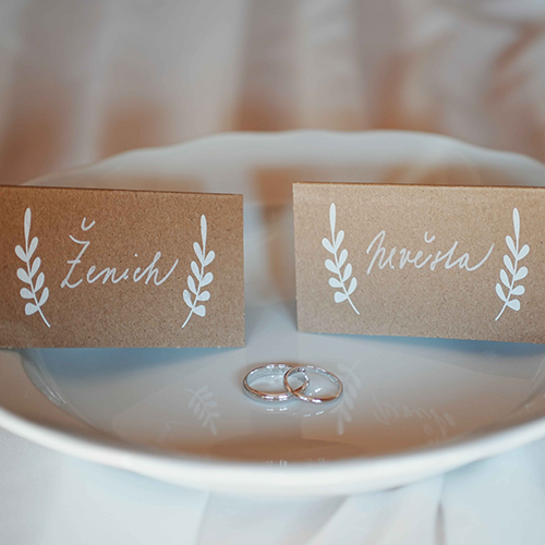 Prstýnky jsme vybrali u Mialis, jelikož nám nikde jinde do oka žádné podobné minimalistické nepadly. Navíc se nám moc líbila možnost gravírování, kterou jsme využili a máme na prstýncích datum svatby.
