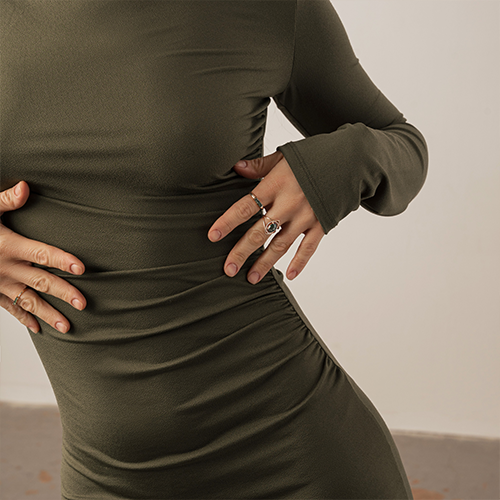 Samet má v sobě šarm a tajemství – a proto mu nejvíc sluší nápadité šperky s hloubkou. Krásně vynikne s výraznějšími, například pečetními prsteny. Geometrické tvary drahokamů dodají celku moderní nádech a v kombinaci s matným zlatem vznikne kontrast, který podtrhne sametovou strukturu látky. A váš look bude vypadat naprosto noblesně.