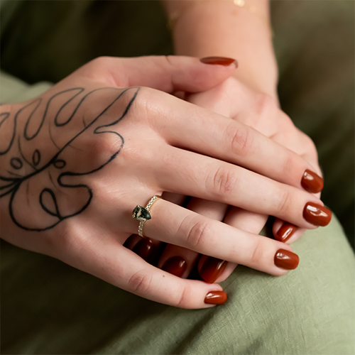 Zelený mechový achát působí, jako by v sobě skrýval drobné chomáčky mechu nebo malé krajinky. Jeho inkluze vytvářejí vždy jedinečné kresby, takže je každý kámen naprostý unikát. Nejlépe vynikne v kombinaci se žlutým zlatem. Ať už máte (nebo se chystáte pořídit) přívěsek nebo prsten s mechovým achátem, věřte, že povýší jakýkoliv (nejen) podzimní outfit.