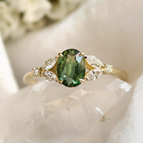 Zelený safír má odstíny od jemně šalvějové až po borovicově zelenou, a tak působí stejně tajuplně jako podzimní les. Ze šperků se zeleným safírem vyzařuje šarm, rafinovanost a elegance. Perfektně se hodí nejen pro zásnubní prsteny, ale také pro doplňky na denní i večerní nošení.