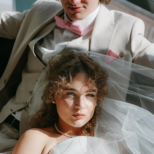 This shade goes perfectly with pearl jewelry or delicate jewelry with diamonds, ethical lab-grown diamonds, moissanite, opals, or moonstones. Necklaces, rings, and earrings in these tones can highlight the beauty, femininity, and tenderness of the bride and add sparkle to her wedding outfit.