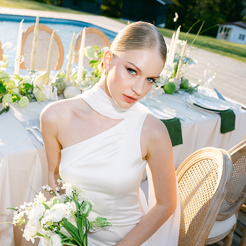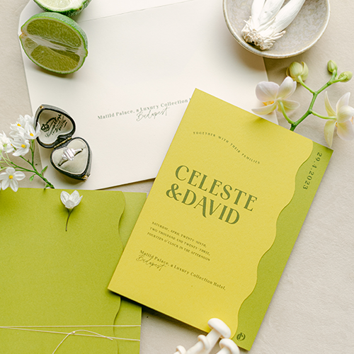 Chartreuse is a color for bold brides who aren't afraid to stand out from the crowd. It's fresh, playful, and instantly eye-catching. This unusual shade, combining green and yellow, can give your wedding day a modern and original touch and works great as an accent in floral arrangements, decorations, menus, or small details such as jewelry. If you want to complement your wedding dress in an original way, choose jewelry with peridot.