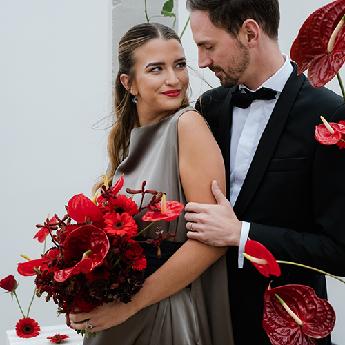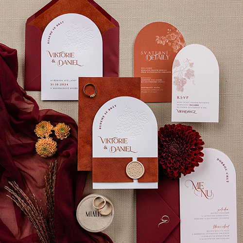 On lighter fabrics, in floral arrangements, or as a subtle color accent, it looks surprisingly fresh and chic. Burgundy will appeal to newlyweds who want to add a touch of original elegance to their wedding day, regardless of the season.