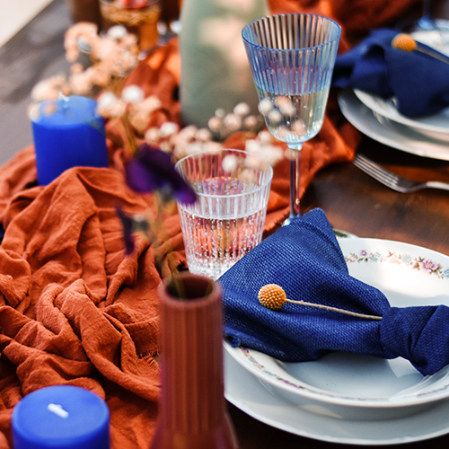 If you want your day to be truly royal, cobalt blue is a really good choice for you. Unlike traditional soft shades, it immediately catches the eye and can give your special day an extraordinary character without being ostentatious. You can use it not only for bridesmaids' dresses, but also in details that will brighten up the entire space, from flowers and napkins to wedding stationery.