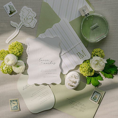 In addition to current trends, there are colors that remain popular despite the passage of time. These timeless classics include emerald, peach fuzz, baby blue, and violet. Emerald brings luxury and elegance to the wedding day, perfectly complementing gold details. As the name suggests, the best choice for this color palette is emerald jewelry, but also jewelry with moss agate, for example. Violet is bold and playful, looking great on flowers, ribbons, and small bridal accessories. If you choose it for your jewelry, go for amethysts or tanzanites.