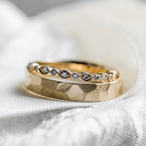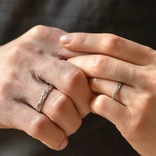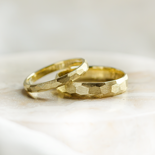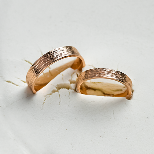 Engraved, scratched, faceted or hammered wedding rings