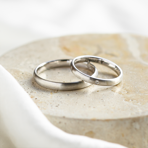 But for couples who want a classic in a more modern coat, we have the option of a matte surface. These two options can be applied to almost any style. So if you see a ring that you would like to have personalised in either a shiny or matte surface, get in touch and we will be happy to create an exclusive piece of custom jewellery for you.