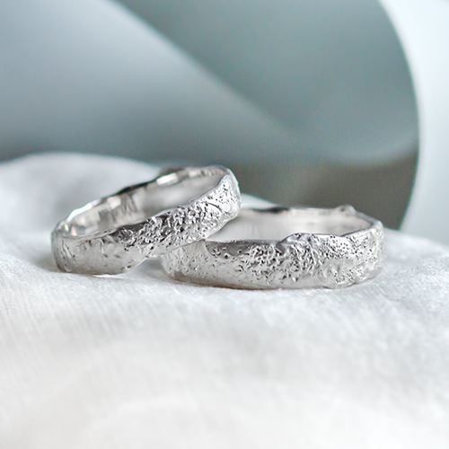 Different, unusual and very original! Organic wedding rings have a surface that can remind you of all sorts of natural textures. Take a good look around and you may find some similarities to nature. Gold jewellery is made using the lost wax method mentioned above, so one ring is like the other.