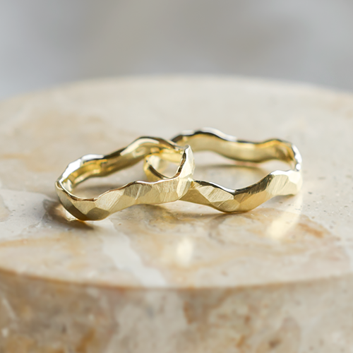 Unique wedding rings are our and your heart's desire! All these pieces are handmade. The faceted, hammered and scratched surfaces, as well as the engravings, are all made by hand. Many people fall in love with these wedding rings because of the precise craftsmanship. Depending on the type of tool and method used, unique designs are created. As a result, each ring is an original and may differ slightly from the model shown in the photographs or in the showroom. But that's the beauty of it, because there's no two pieces exactly the same!