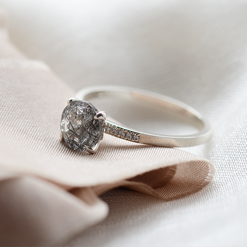 We prefer to use the variety with black needles, known as Cupid's Arrows. This type of rutilated quartz is mysterious, dark but very elegant and perfect for white gold jewellery. But whichever colour of gold you choose, you can be sure to add some designer jewellery to your jewellery box.