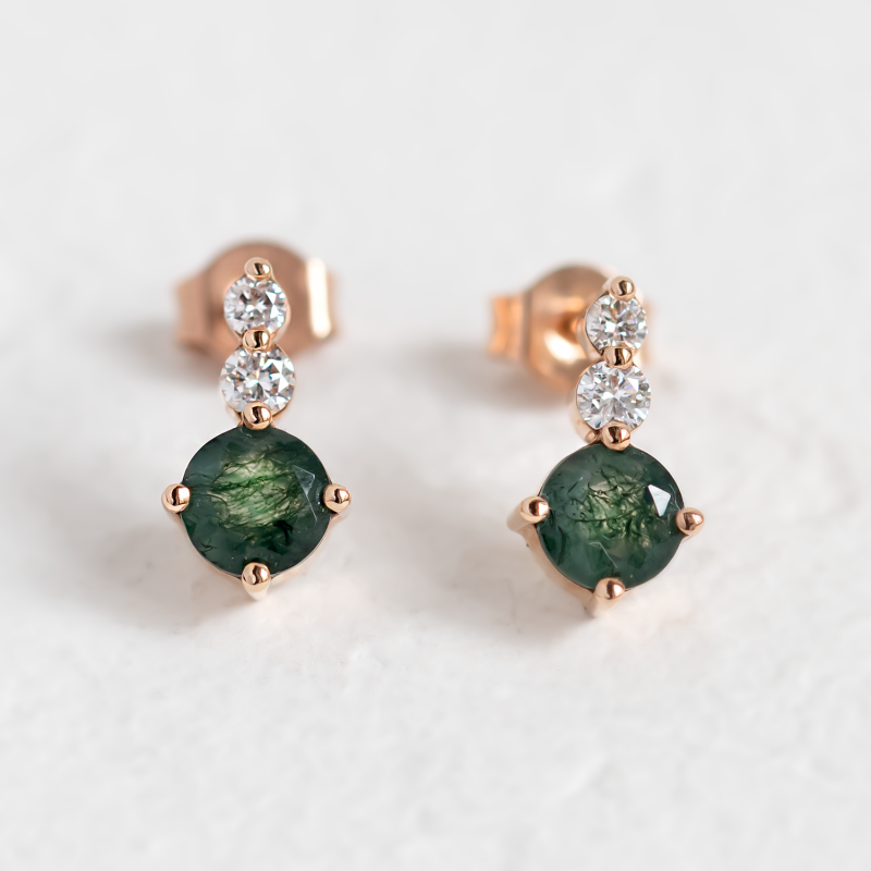 All moss agate gemstones are natural and have their unique shade of green. Each stone is hand-cut and as a result there can appear tiny visible inclusions on the surface.