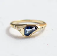 Gold ring with kite blue lab grown sapphire KODA