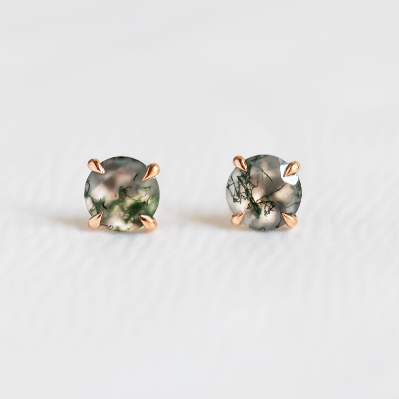 Gold stud earrings with moss agate are a great accessory for women who like original jewelry. Earrings with natural green gemstone are suitable for lovers of forest, nature, moss and ferns. Who likes the dark green color, will surely give us the truth. We produce earrings with moss agate in rose gold as well as in classic yellow and the popular white.