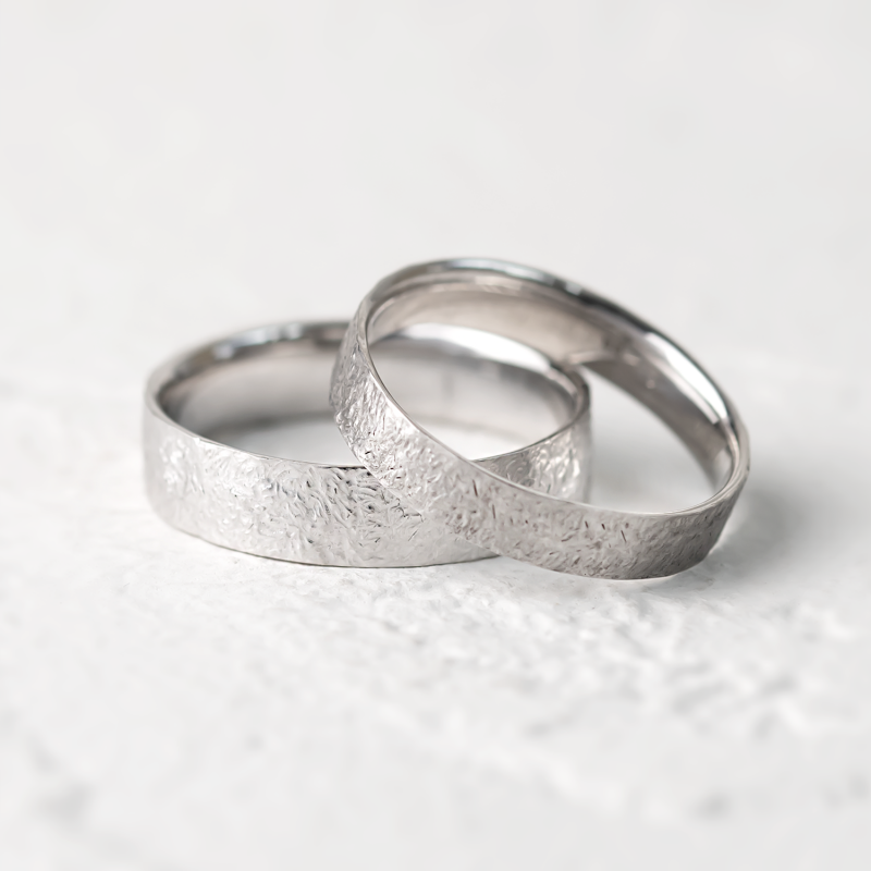 We have added another cool model to our collection of non-traditional wedding rings. We bet on an hammered surface in a matt finish. Atypical wedding rings made of gold are the most popular with this surface treatment. They are comfortable to wear and are very resistant to external influences. We produce wedding rings in all colors of gold.