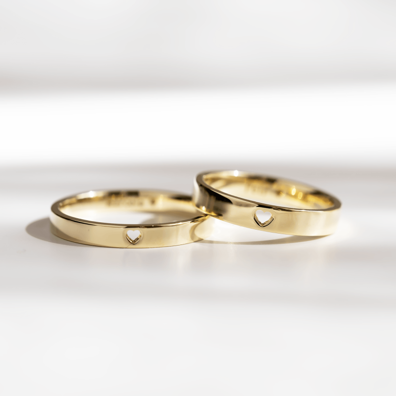 Ladies and gentlemen, we present to you a pair of rings with a heart cutout that will capture you. They are made of gold in a classic wide band and will suit all future newlyweds who believe that there is beauty in simplicity. We make these gold wedding rings in yellow, white and rose gold to ensure that you love them so much that you will be proud to wear them for the rest of your life. Come and collect your dream pair at our showroom in the heart of Prague, where all our handmade jewellery is created, or choose online!