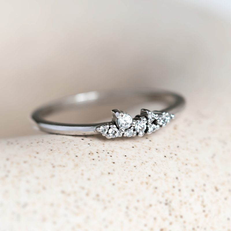 Trendy prsten v cluster stylu plný diamantů skvěle doplní vaši sbírku šperků pro všední den i speciální příležitosti. Malé diamanty rozzáří nejen vaši jemnou ruku, ale i váš den. Při pohledu na něj se vám již nebude chtít sundat z ruky. Je naprosto dokonalým dárkem pro každou ženu, která sleduje trendy a stále hledá nové zajímavosti.