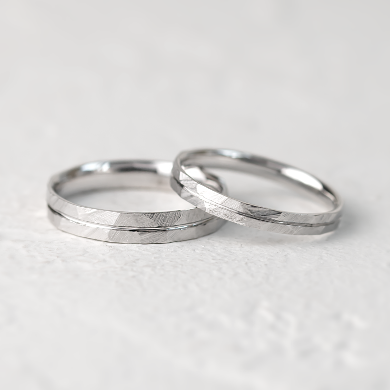 Každý snubní prsten s tepaným (či jinak upraveným) povrchem vyrábíme ručně v našem ateliéru, a díky tomu je každý šperk jedinečný. Výsledný povrch se tedy může lehce lišit od povrchu na fotografii či maketě v showroomu.